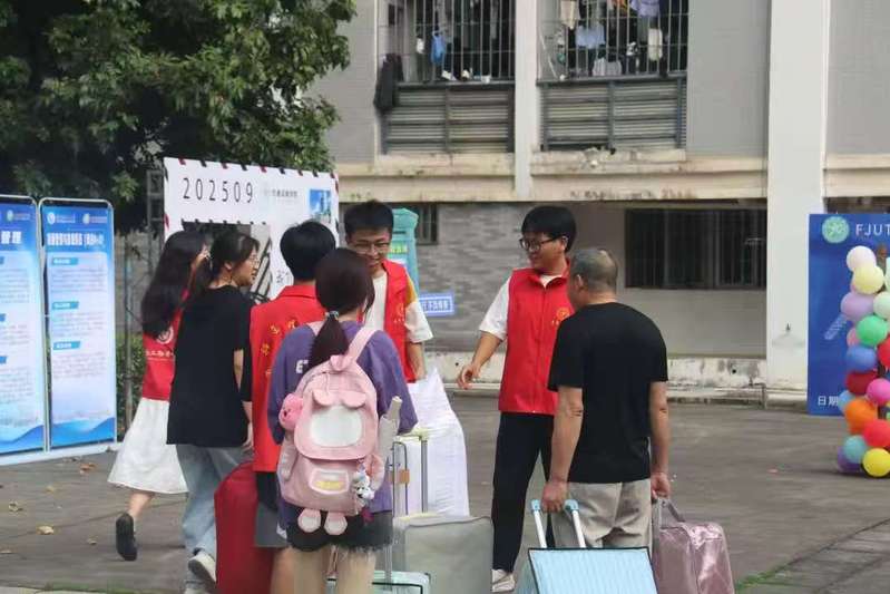 热闹的校园里一抹忙碌的“红”引人注目。他们怀揣热忱,穿梭在各楼栋间指引新生前往相对应的学生公寓,不辞辛劳地帮忙搬运行李。指尖传递的不仅是行李的重量,更是暖心的温度。