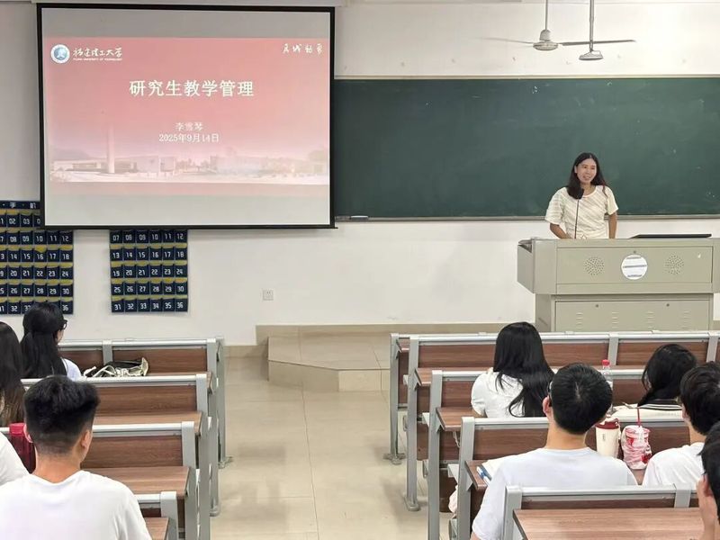 随后,研究生教学秘书李雪琴老师向2025级研究生介绍研究生教育管理系统、研究生课程安排和学位论文要求,使得新生们对接下来的课程规划和学习生活有了初步的认识。