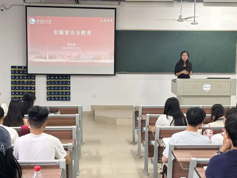 实验中心主任蔡思静老师向2025级研究生详细讲解实验室守则、用电安全、应急救护等实验室安全教育知识,教育同学们实验室内禁止饮食、杜绝私带电源充电,向同学们普及遇到火灾、触电等紧急事故的救护知识。