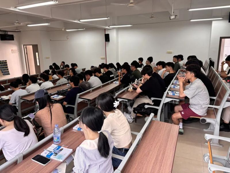 学院党委副书记傅少伟带同学们回顾了福建理工大学的发展历程,从1896 年至今,学校始终坚守育人初心,培养了一批又一批优秀人才。了解校史,是为了更好地传承校训精神,让 “真诚勤勇” 成为每一位新生的精神底色。