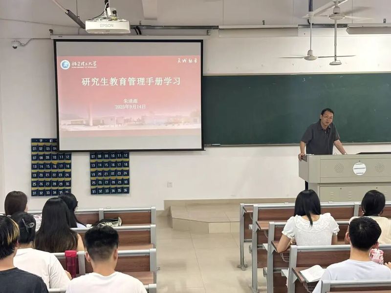 最后,学院团委书记兼2025级研究生辅导员朱清源老师带领大家学习《研究生教育管理手册》,将入学适应活动、行为规范教育、安全教育等元素融入新生入学教育,向2025级研究生详细讲解校规校纪,加强新生们对学校规章制度的认识,让校规校纪内化于心、外践于行。