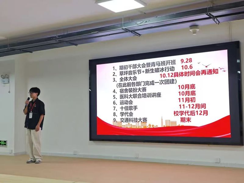 最后,主席团代表陈纬杰介绍本学期工作安排。陈纬杰同学的发言为新加入院团委的成员们指明了新方向,设定了高标准,鼓励大家“打通副本”,以饱满的热情参与工作!